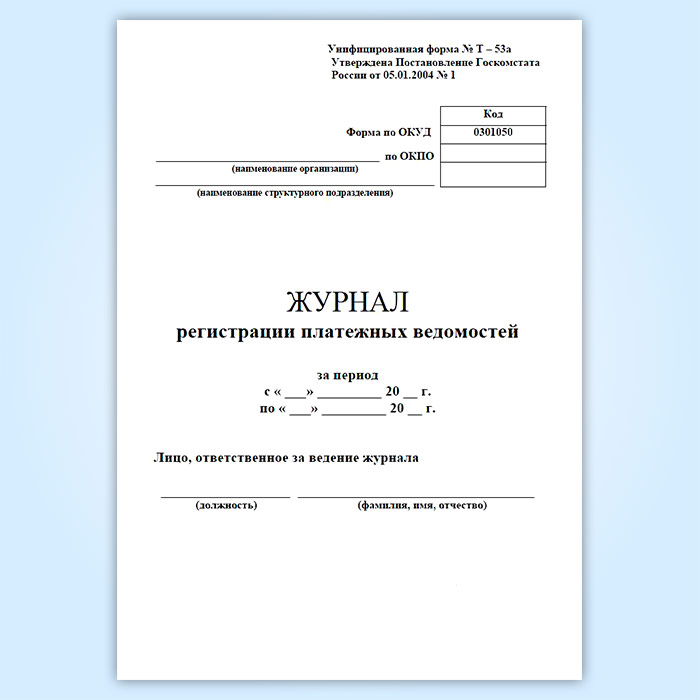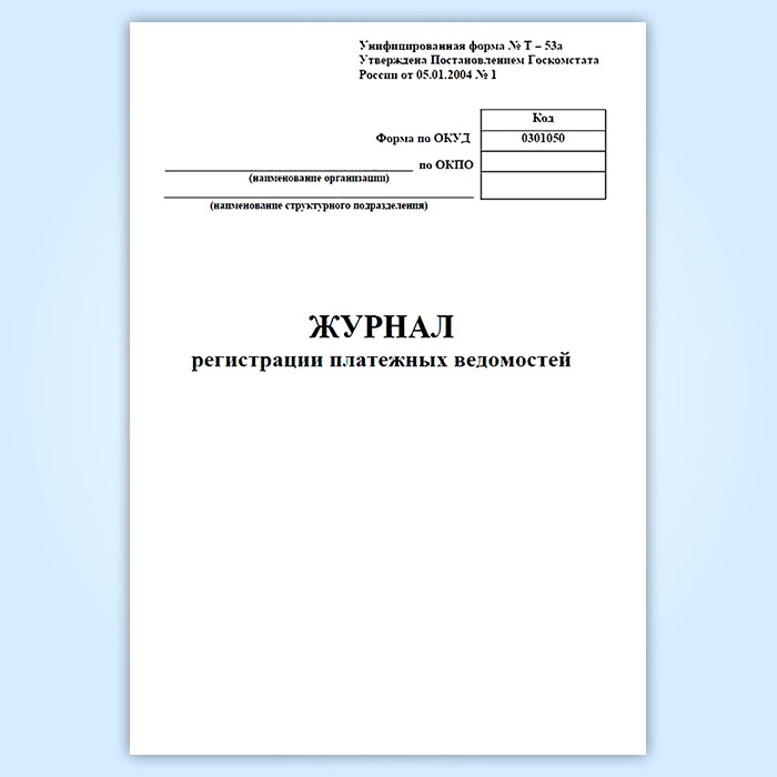 Журнал регистрации платежных ведомостей (унифицированная форма № Т-53а, форма по ОКУД 0301050) в Сочи купить