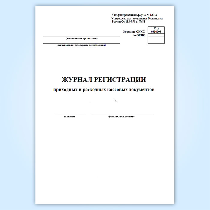Журнал регистрации приходных и расходных кассовых документов (форма № КО-3) в Сочи купить
