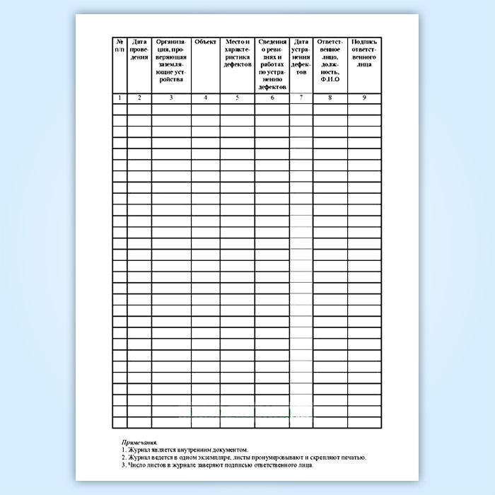 Журнал результатов ревизий устройств молниезащиты, проверочных испытаний заземляющих устройств (форма Б.30) в Сочи купить