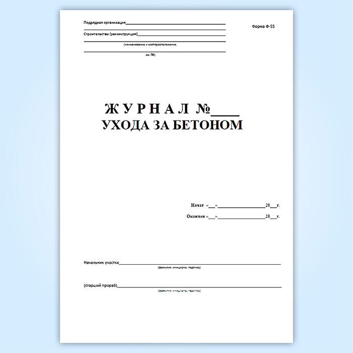 Журнал ухода за бетоном (форма Ф-55) в Сочи купить