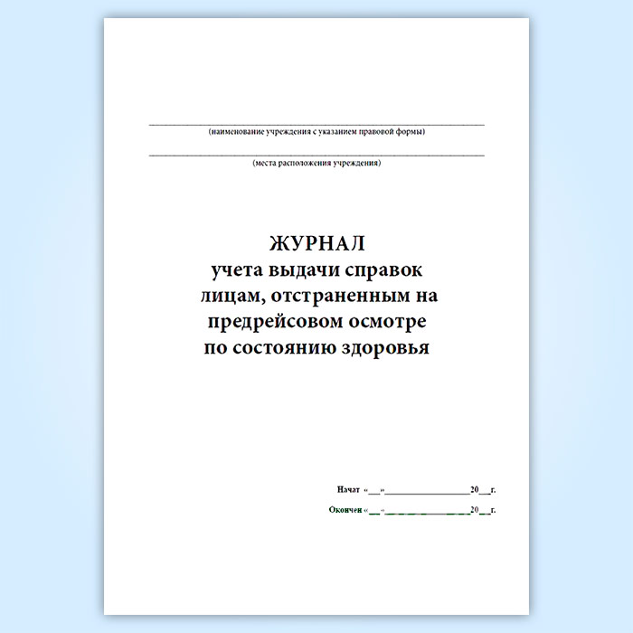 Журнал учета выдачи справок лицам, отстраненным на предрейсовом осмотре по состоянию здоровья в Сочи купить