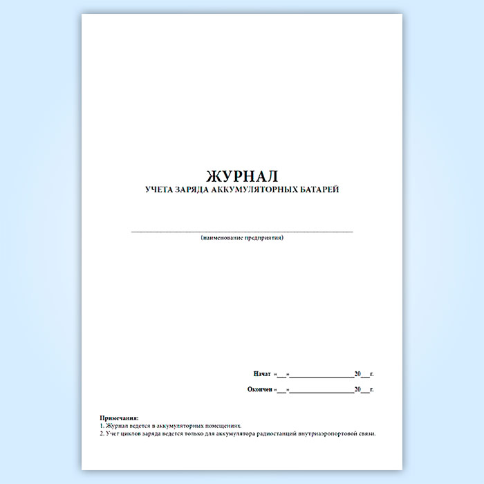 Журнал учета заряда аккумуляторных батарей в Сочи купить