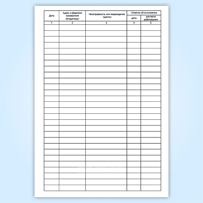 Журнал учета заявок населения на оперативное устранение неисправностей и повреждений инженерного оборудования в жилом доме (санитарно-технические работы) в Сочи купить