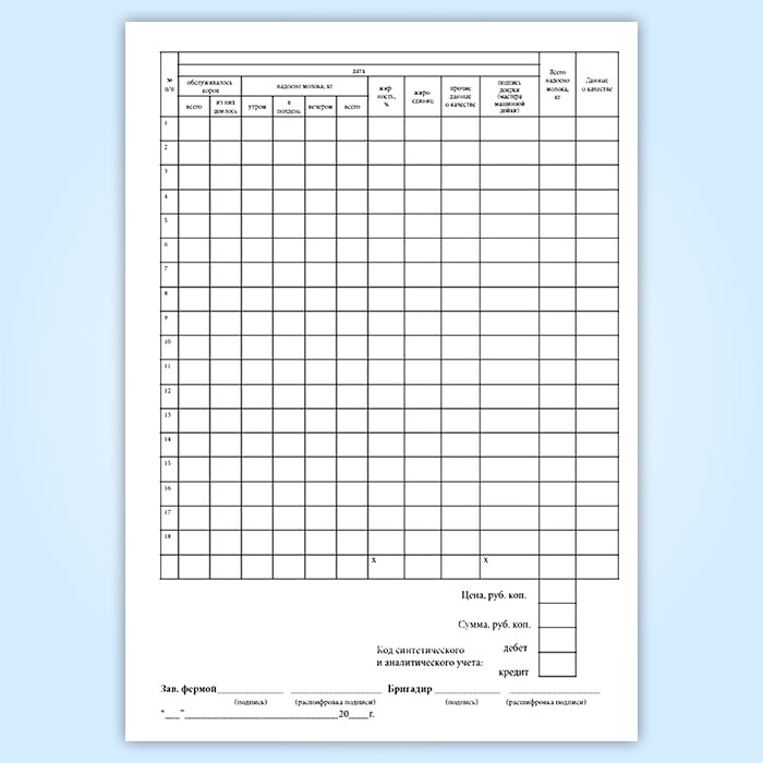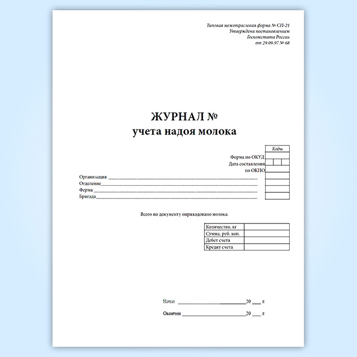 Журнал учета надоя молока (форма № СП-21) в Сочи купить