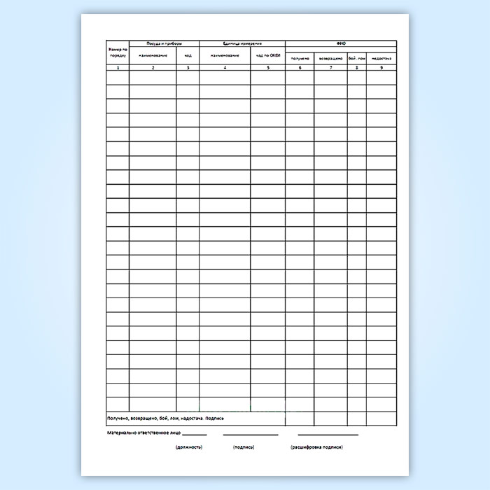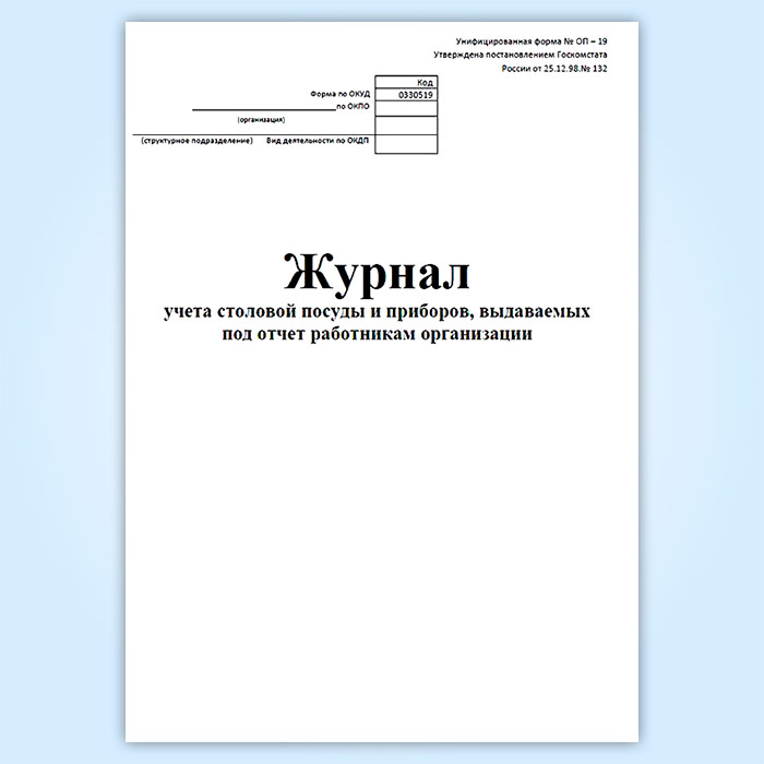 Журнал учета столовой посуды и приборов, выдаваемых под отчет работникам организации (форма № ОП-19) в Сочи купить