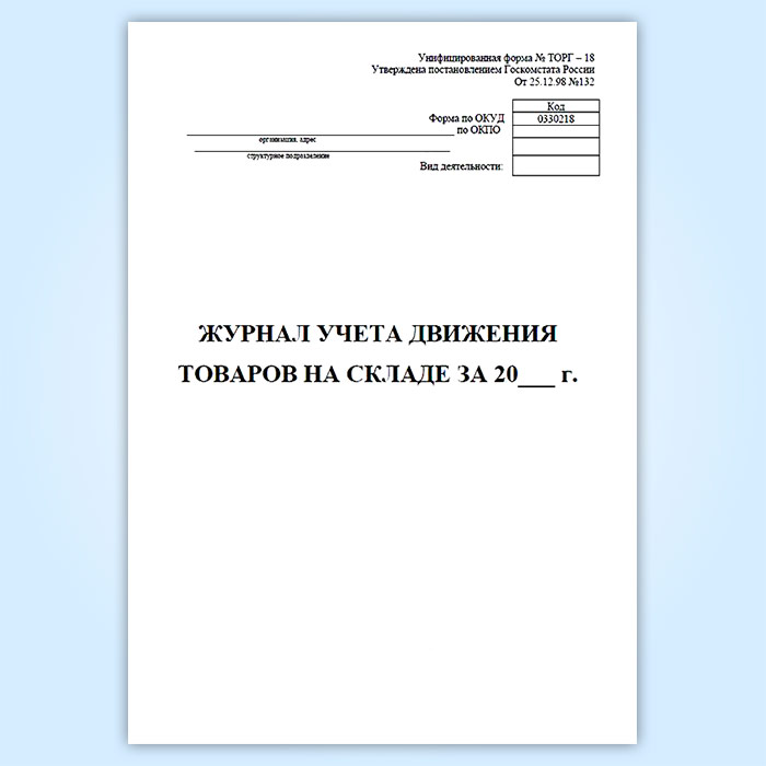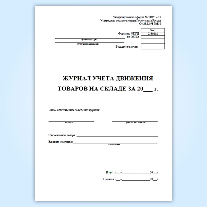 Журнал учета товаров на складе (форма ТОРГ-18) в Сочи купить