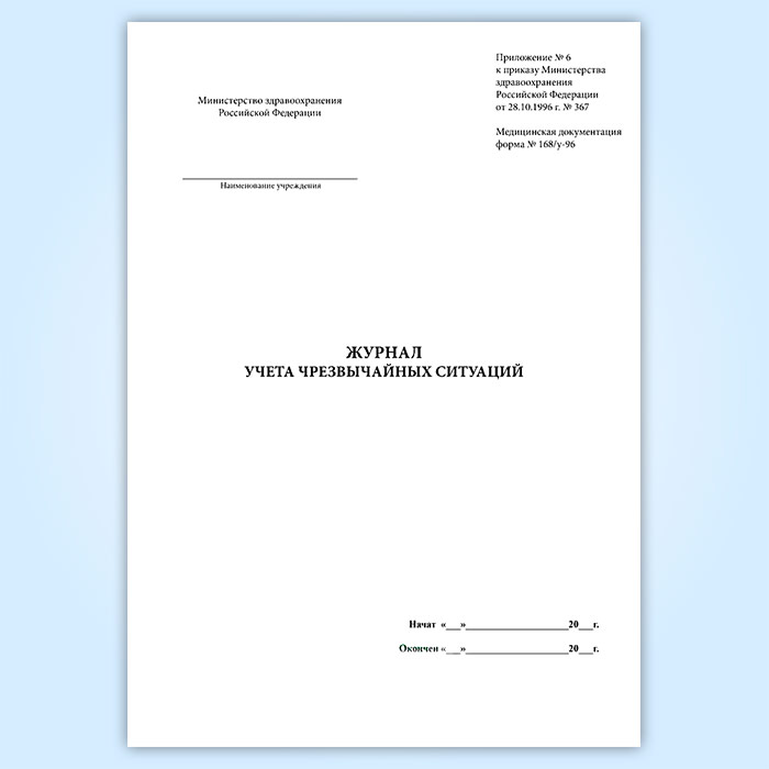 Журнал чрезвычайных ситуаций (форма № 168/у-96) в Сочи купить