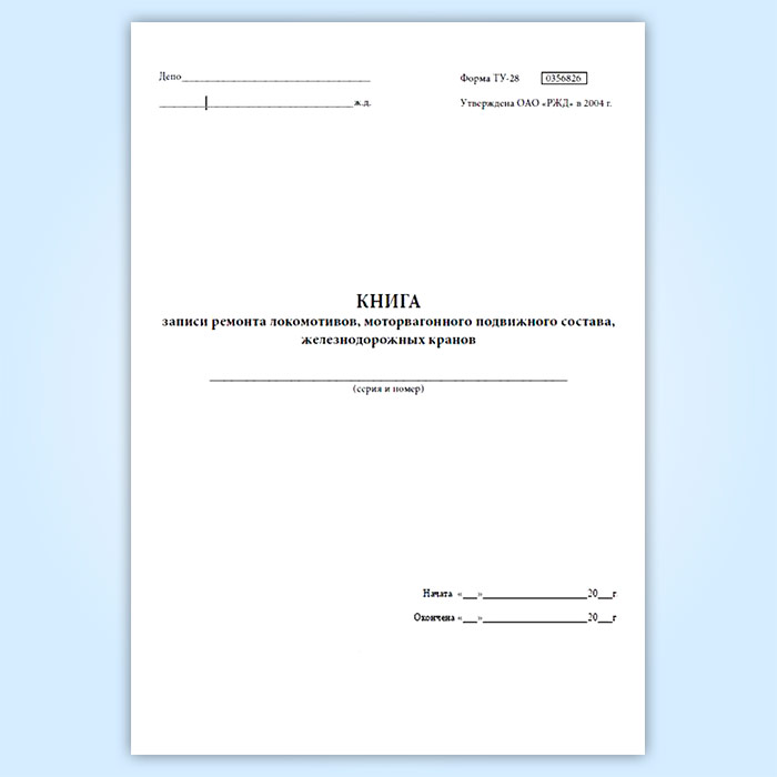 Книга записи ремонта локомотивов, моторвагонного подвижного состава железнодорожных кранов (ТУ-28) в Сочи купить