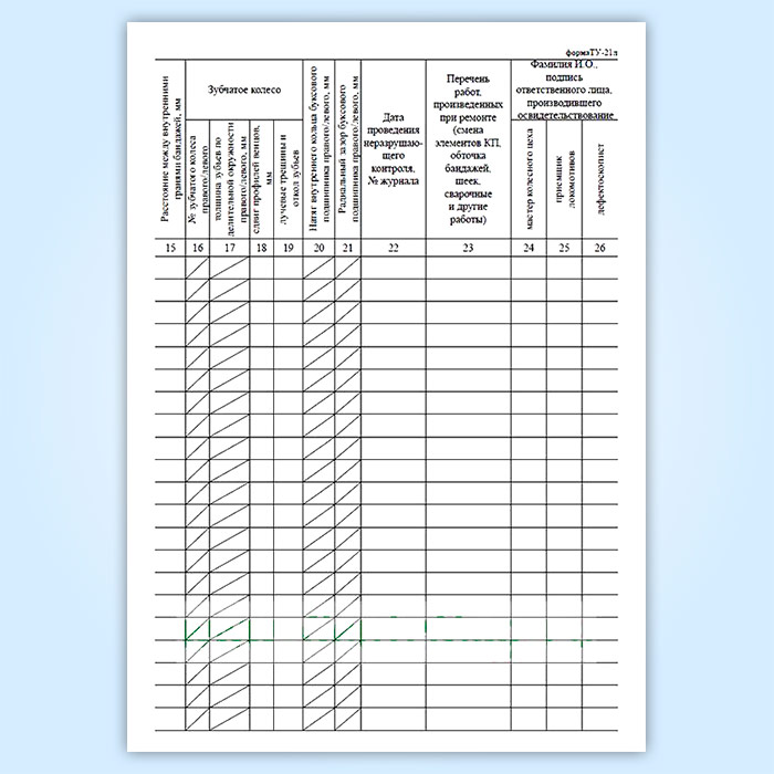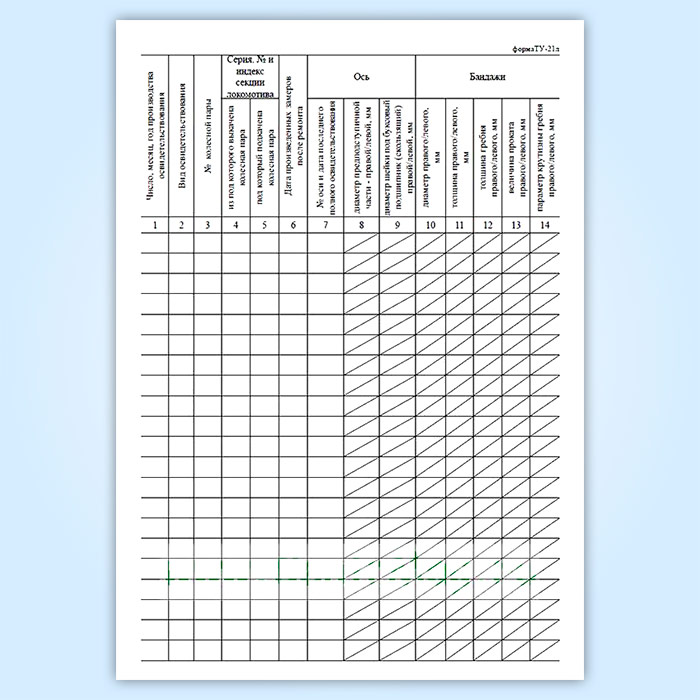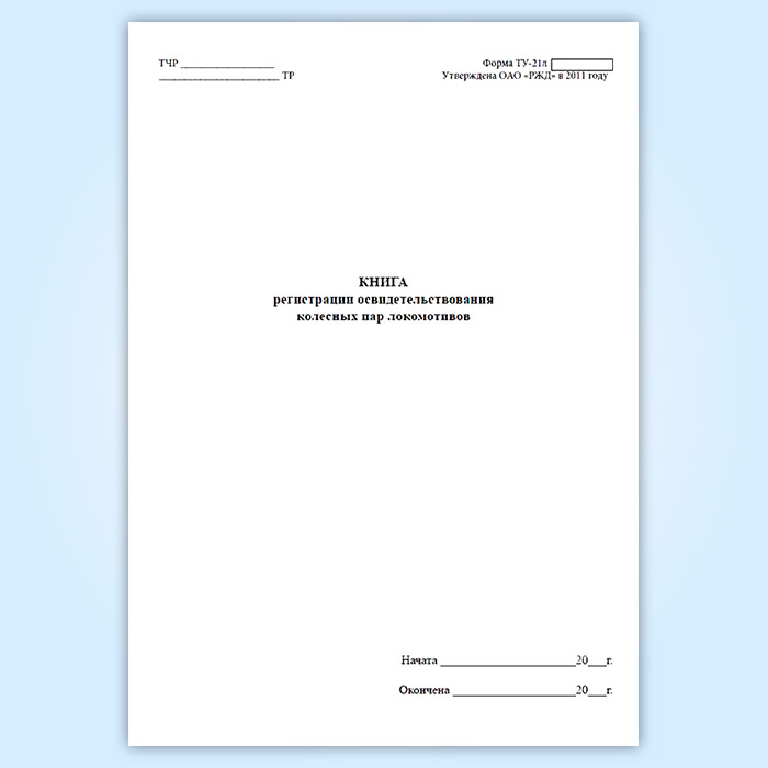 Книга регистрации освидетельствования колесных пар локомотивов (форма ТУ-21л) в Сочи купить