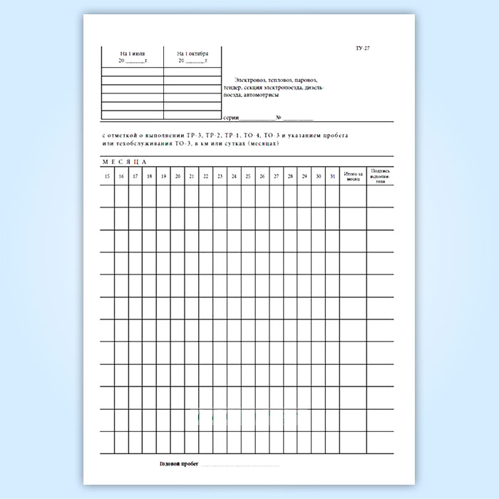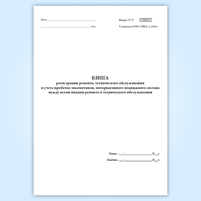 Книга регистрации ремонта, технического обслуживания и учета пробегов локомотивов, моторвагонного подвижного состава между всеми видами ремонта и технического обслуживания (форма ТУ-27) в Сочи купить