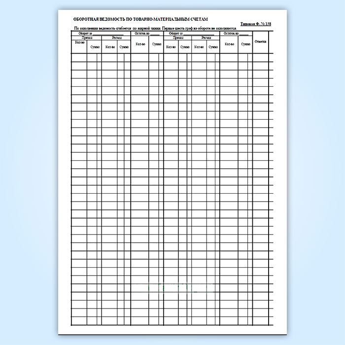 Оборотная ведомость по товарно-материальным счетам в Сочи купить