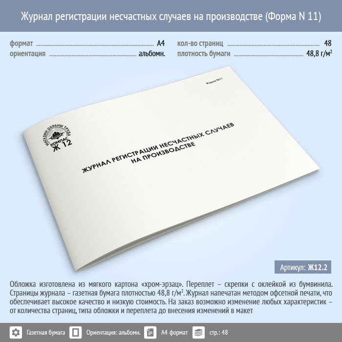 Журнал регистрации несчастных случаев на производстве (Форма N 11) (48 стр., Ж12.2) в Сочи купить