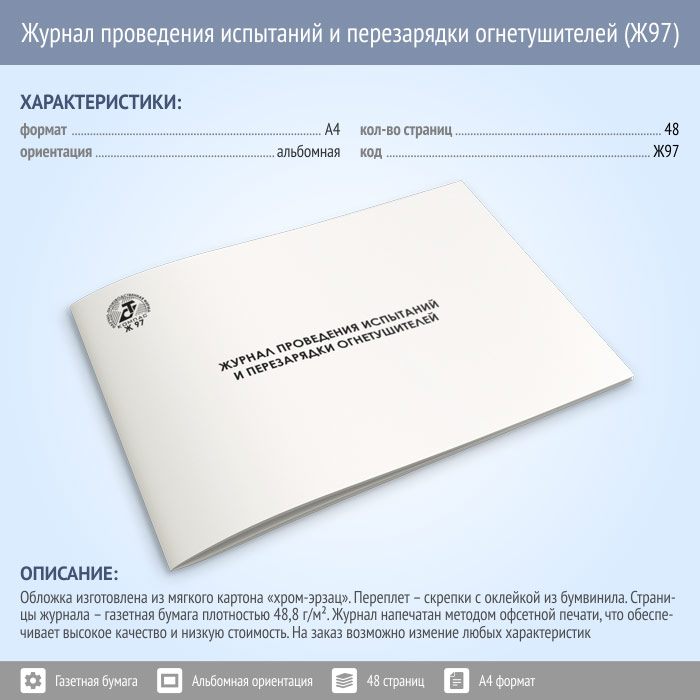 Журнал проведения испытаний и перезарядки огнетушителей (48 стр., Ж97) в Сочи купить