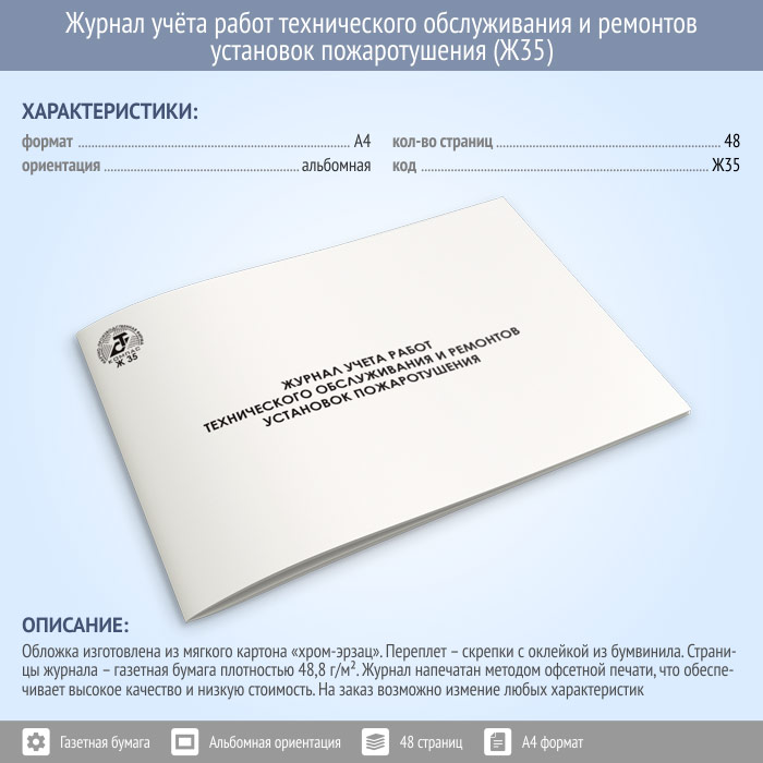 Журнал учета работ технического обслуживания и ремонтов установок пожаротушения (48 стр., Ж35) в Сочи купить