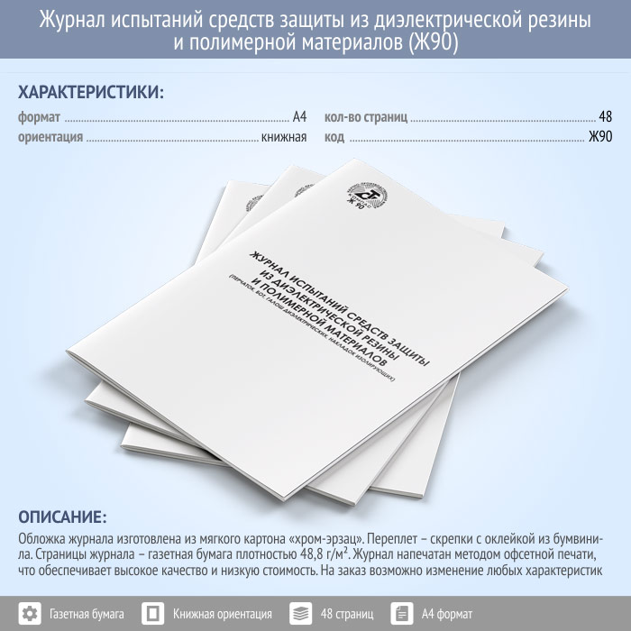 Журнал испытаний средств защиты из диэлектрической резины и полимерных материалов (48 стр., Ж90) в Сочи купить