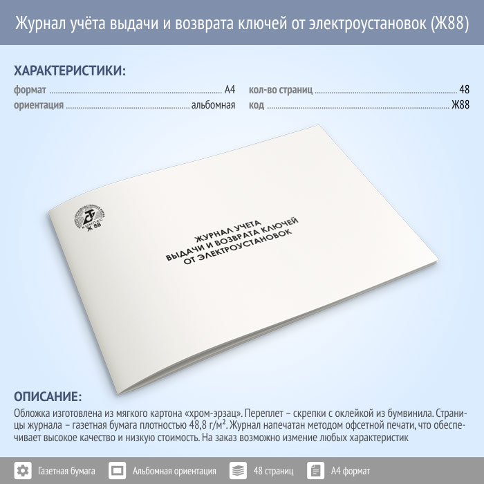 Журнал учета выдачи и возврата ключей от электроустановок (48 стр., Ж88) в Сочи купить