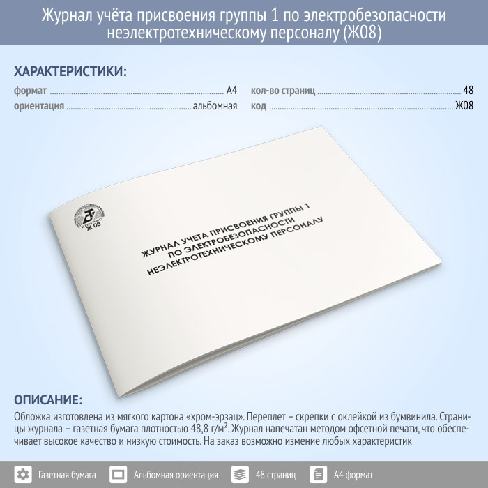 Журнал учета присвоения группы 1 по электробезопасности неэлектротехническому персоналу (48 стр., Ж08) в Сочи купить