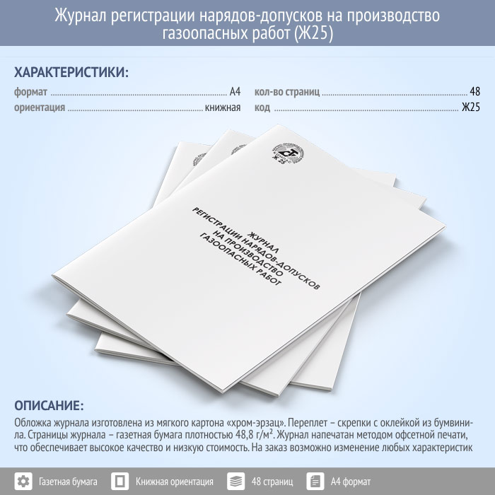 Журнал регистрации нарядов-допусков на производство газоопасных работ (48 стр., Ж25) в Сочи купить
