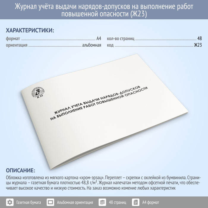 Журнал учета выдачи нарядов-допусков на выполнение работ повышенной опасности (48 стр., Ж23) в Сочи купить