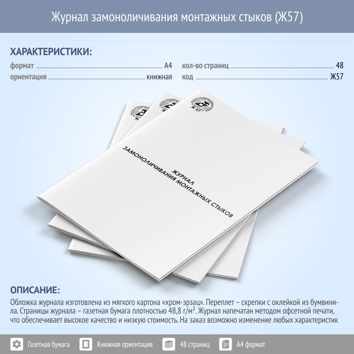 Журнал замоноличивания монтажных стыков (48 стр., Ж57) в Сочи купить