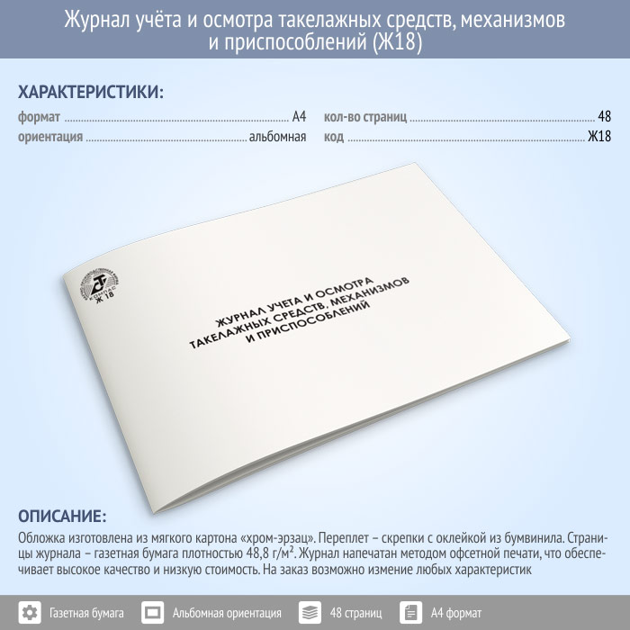 Журнал учета и осмотра такелажных средств, механизмов и приспособлений (48 стр., Ж18) в Сочи купить