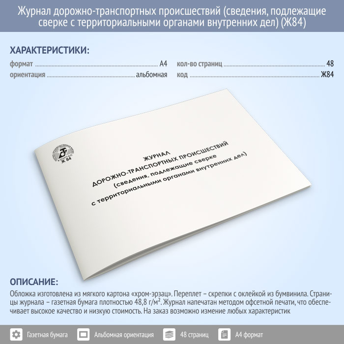 Журнал дорожно-транспортных происшествий (сведения, подлежащие сверке с территориальными органами внутренних дел) (48 стр., Ж84) в Сочи купить