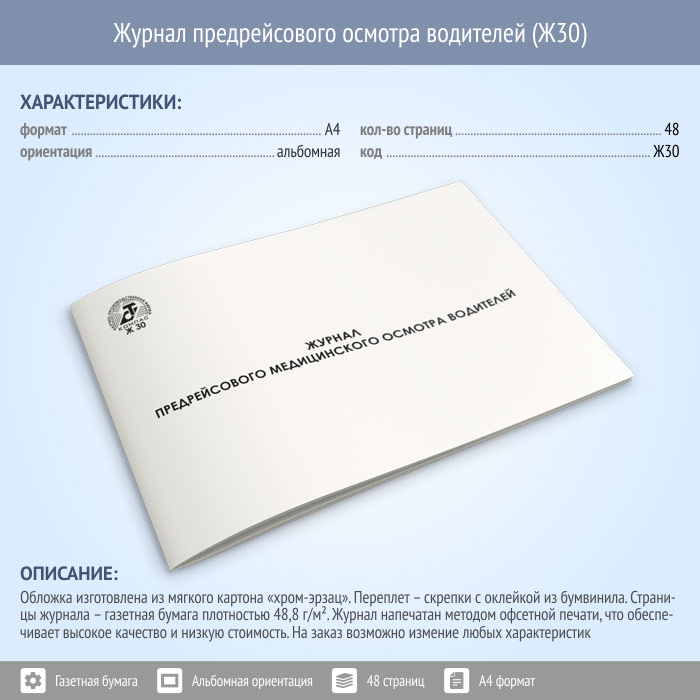 Журнал предрейсового осмотра водителей (48 стр., Ж30) в Сочи купить