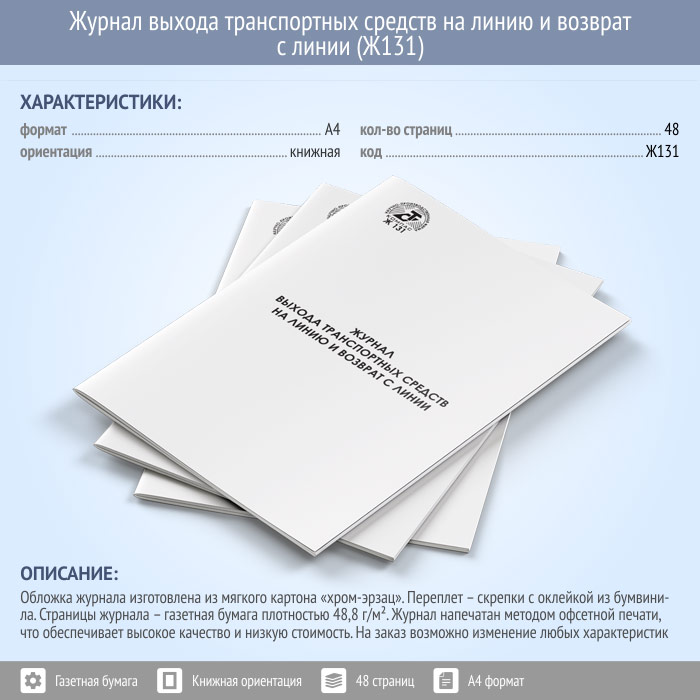 Журнал выхода транспортных средств на линию и возврат с линии (48 стр., Ж131) в Сочи купить