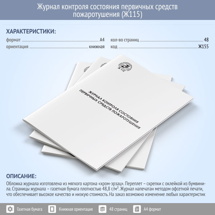 Журнал контроля состояния первичных средств пожаротушения (48 стр., Ж115) в Сочи купить