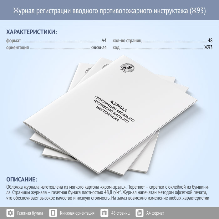 Журнал регистрации вводного противопожарного инструктажа (48 стр., Ж93) в Сочи купить